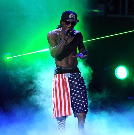In the South it's not a good idea to turn the flag into a pair of shorts...and match it up with checkered socks. Lil Wayne must be stopped (LOL)!