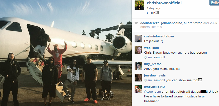 Brown's income has increased due to his joint tour with Trey Songz and is slated to further improve with solo concert dates he has announced. However, Brown has many financial obligations and it should not include paying OHB's way. Brown has a daughter and mother to think about regarding their financial welfare.